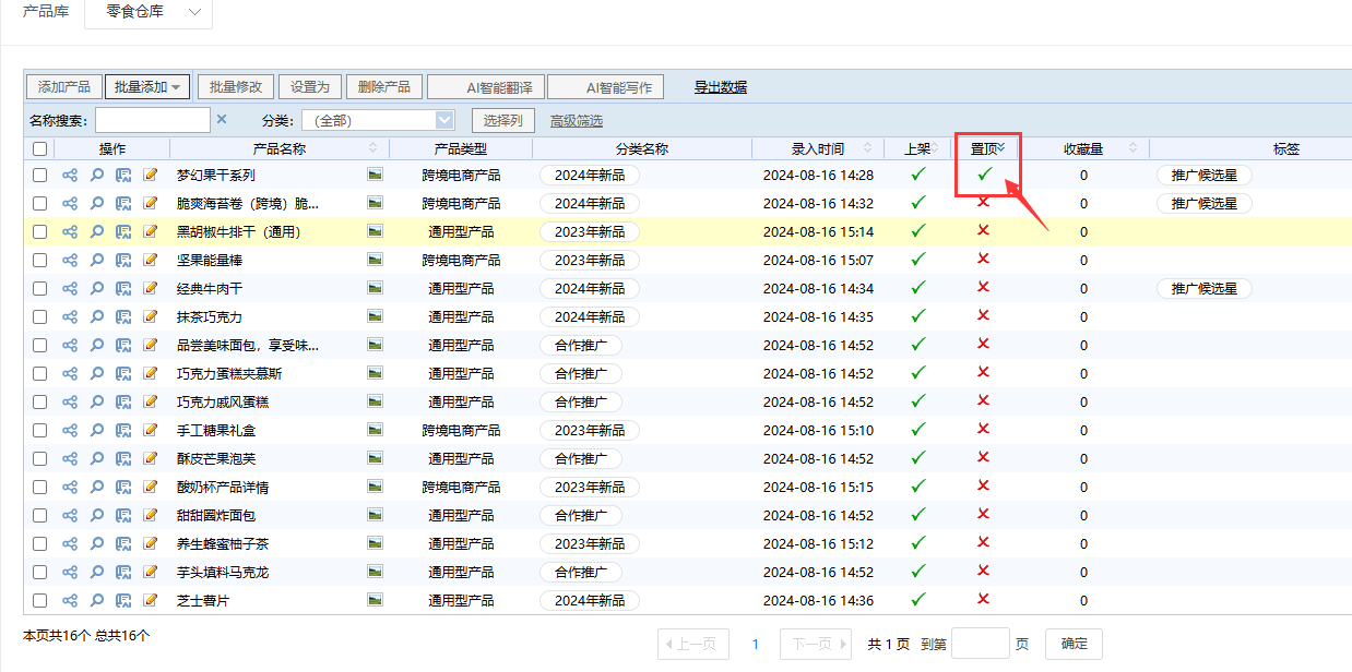 新增持后台设置置顶产品,在设计页面自定义置顶标识样式